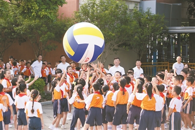 昨日,更多的学校和幼儿园以小游戏来开启新学期。南城阳光十小用泡泡机欢迎孩子,学校负责人表示,希望通过创意活动让新生们在学校中感受到家的温馨和关爱。在其他学校,如泼彩作画、齐心传球、放飞心愿纸飞机等活动各出心裁,孩子们在欢笑中迎接新学期。