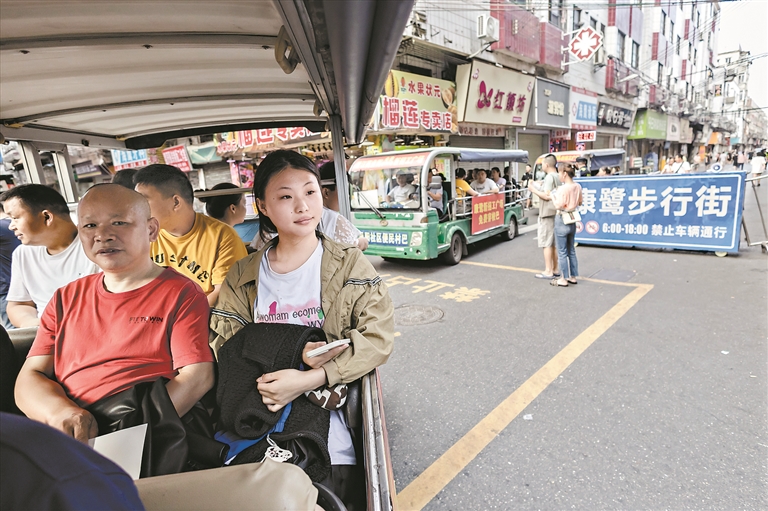 原来的“招工一条街”变身成为康鹭步行街,大街东西两个出入口都有醒目的路障,上面写着:6时-18时禁止车辆通行。群众通勤出行和购物的环境都大为改善。