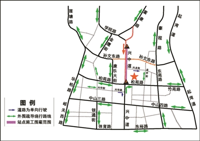 施工内容:对兴中道东侧、孙文东路北侧部分路段进行围蔽,实施管线迁移、绿化迁移及临时交通导改施工。