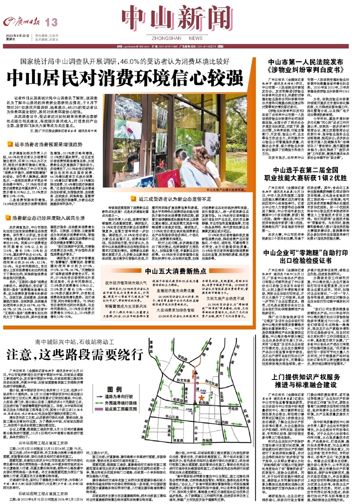 - 中山居民对消费环境信心较强 记者昨日从国家统计局中山调查队了解到,该调查队为了解中山居民的消费新业态新热点情况,于8月下旬对261位居民开展调研,结果显示,46.0%的受访者认为消费环境比较好,居民对消费环境信心较强。