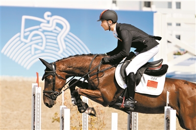 杭州亚运会马术三项赛昨日完赛,中国队实现在亚运马术项目上金牌“零的突破”,将马术三项赛团体赛、个人赛金牌收入囊中。自1982年新德里亚运会马术成为正式比赛项目以来,中国队终于站上该项目的最高领奖台。图为中国选手华天在比赛中。