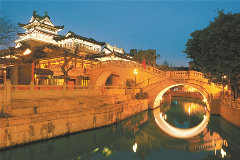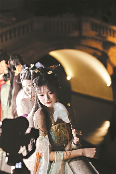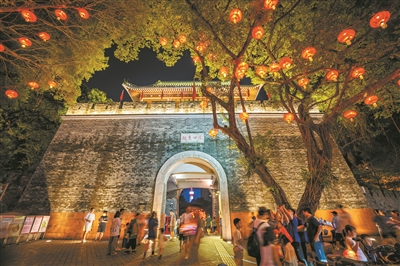 在现代,中秋节已成为新潮的日子。国风兴起,守旧如新。永庆坊的“月亮桥”,挤满了穿汉服的人。月光衣我以华裳,在银光照耀下,姿容也分外动人。亭台水榭,倒映明月,画舫轻摇,微风拂面。光孝路的鱼灯铺满长街,头顶宛若星河。灯火如画,举目皆是人间烟火,古风韵味。越秀公园东门,红红的灯笼高高悬挂,串起了中秋的缤纷银河。小蛮腰在橙色月亮的陪伴下,也变换着色彩,为城市点亮坐标。而商场外巨大的月球模型,安坐的宇航员,替人们填补了登月的想象,也唤起孩童对月亮的向往。今年的中秋又恰好邂逅国庆,大街小巷红旗飘飘。北京路上挂满的红旗和红灯笼,吸引游人打卡拍照,定格下独特的“中国红”。在这浓浓的节日氛围里,人们赏月、观灯、看景,享受着长假的休闲。