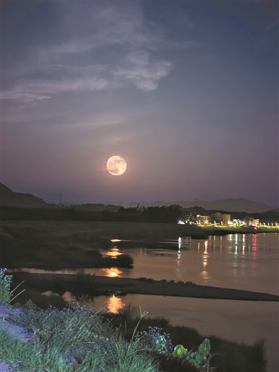 海上生明月,天涯共此时。城里的月亮被掩盖了光芒,郊外的月色更显皎洁。月亮的残影铺到水面,与乡村的倒影一同渲染河流。远处山峦烟雾缭绕,与淡蓝色的雾霭相互映衬,绘出秋天的画卷。月光伴清风,月色更朦胧,在薄纱般云雾的笼罩下,月亮的光晕分外迷人。