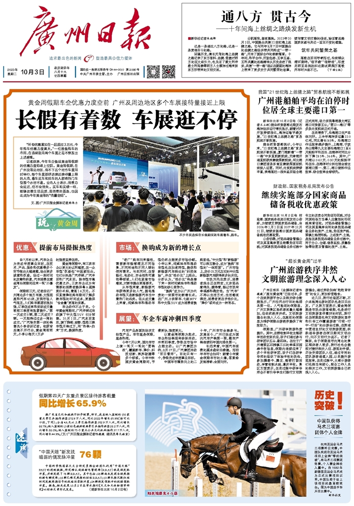 - 广州港船舶平均在泊停时位居全球主要港口第一 新华社北京10月2日电 (记者王立彬)据自然资源部近期发布海洋经济运行情况显示,随着对外开放持续深化,海洋运输平稳发展,“21世纪海上丝绸之路”贸易航线不断拓展。 据自然资源部统计,今年以来,