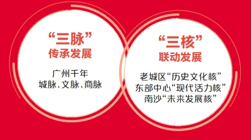 回答时代命题,广州正推动老中轴、新中轴、活力创新轴融合互动,历史文化核、现代活力核、未来发展核联动发展,老广州、新广州、未来广州在同一时空中交相辉映、相得益彰。