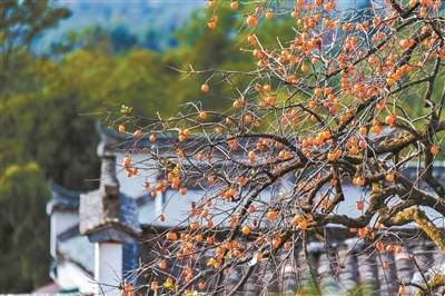 在晒工坊观景台,也可以欣赏层层叠叠、错落有致的特色晒秋场景。