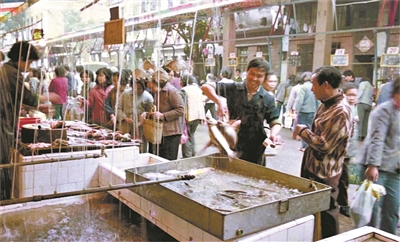 《广州日报》1988年12月15日刊登的一篇报道《广州放开水产市场连年有鱼》回顾了广州水产市场放开多年后的可喜变化:市民人均吃鱼量接近31公斤,居全国各大城市之首;品种从开放初期的10多个增加到上百种,美国的加州鲈、南美洲的淡水白鲳、马来西亚的大虾、泰国的尖吻鲈以及名贵的基围虾、风鳝等优质品种都可以买到;全市经营水产品的国营、集体、个体户(档)近2000个,市民可就近买到鲜活鱼虾。