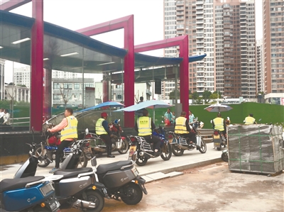 广州日报讯 (全媒体记者全杰摄影报道)记者近日跟随有关部门走访地铁站出入口交通秩序和卫生环境情况,发现存在摩托车非法搭客、机动车违停、电动自行车乱停放等问题。