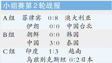 本轮B组另一场比赛,朝鲜女足以0比0战平韩国女足。这样小组赛两轮过后,韩国女足积4分有9个净胜球排名第一,朝鲜女足积4分有1个净胜球排名第二,中国女足积3分有2个净胜球依旧排名小组第3位。