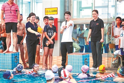 10月25日,广附学生迎来“旱鸭子”训练营开营仪式暨体育文化节嘉年华活动。奥运跳水冠军陈艾森也来到现场,与广附师生分享冠军故事,指导学生游泳动作。学校党委书记王国栋在开营仪式上倡导每一位广附学生具备一项体育技能和一项艺术爱好,拥有阳光健康的品质,锤炼青春之我。在陈艾森之前,学校还邀请过羽毛球世界冠军李俊慧、前中国男篮队员等体育榜样,与学子热情互动,现场教学。