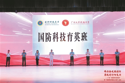 创校至今,广附赓续红色血脉,在2012年成立了全国首家高中国防班。2022年7月,国防科技大学授予广附“优质生源基地”牌匾。今年9月,国防科技大学更是将目前在广东开设的唯一一个“国防科技育英班”落户广附。