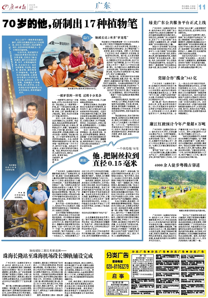 - 70岁的他,研制出17种植物笔 文、图/广州日报全媒体记者黄文生 在山上采下一堆堆茅草和葵枝、葵叶,在街头收集被经过加工过的蔗渣,经过江门民间艺人张成富精心制作,这些材料眨眼间成为一支支精美的植物笔。 10多年来,张成富