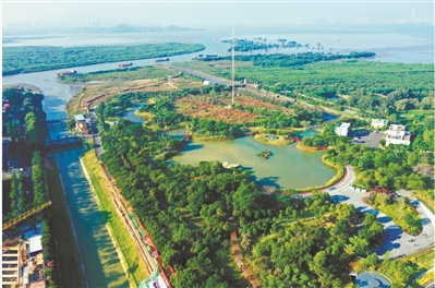 记者了解到,琵鹭节活动的固定场地——福田红树林生态公园位于新洲河与深圳河交汇入海口处。它的地理位置非常特殊,西边紧邻福田红树林国家级自然保护区;南边一河之隔的对岸是属于拉姆萨尔国际重要湿地的香港米埔自然保护区,共同依傍着广阔的深圳湾区域。从生态地理位置上来说,这个公园的生态环境优劣,会直接影响到深港两地两个自然保护区的生态环境。