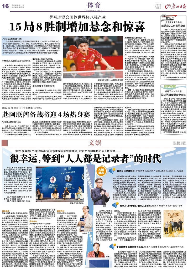 - 很幸运,等到“人人都是记录者”的时代 昨日,第20届中国(广州)国际纪录片节进入第二天,多个重磅活动轮番登场。在本届纪录片节的主会场,每个区域的活动安排都很丰富。“时代立传——纪录片的历史责任与文化使命”主论坛、全球纪实产业峰会、“中