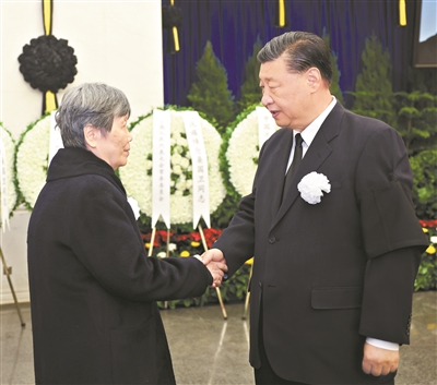 上午9时30分许,习近平、李强、赵乐际、王沪宁、蔡奇、丁薛祥、李希、韩正等,在哀乐声中缓步来到桑国卫同志的遗体前肃立默哀,向桑国卫同志的遗体三鞠躬,并与桑国卫同志亲属一一握手,表示慰问。