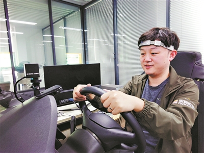 此外,一款利用“脑机接口”预防疲劳驾驶的机器也在研发中。黄骐云在模拟驾驶室中开动汽车,头上的脑机头环采集其脑电信号,系统一旦判断司机疲劳驾驶,将发出警示声。“目前,这个科研项目已与长途货运公司达成合作协议。”他介绍。