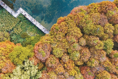 “刚从北京看完雪景,回来广州就遇见了焦糖色的秋天……美到窒息的落羽杉,这两周是最佳观赏期。错过就又要等一年啦。大自然赐予的美拉德系景色,像闯入了油画般的童话世界。”“大观湿地的落羽杉,林大树多,还有木桥、湖泊、栈道穿梭其中。阳光透过焦糖色的树林,留下一道道光影。浓浓的秋天氛围,一点都不输其他地方哦。”在社交平台上,落羽杉是备受年轻人追捧的“网红”,不少公园景点成了市民游客的打卡点。中新广州知识城凤凰湖木栈道两畔的落羽杉纷纷变红,木栈道、湖水、城市景观,让它一下子成了人们追捧的地方;麓湖公园最近人潮如鲫,湖畔满是游客;天河公园的落羽杉在阳光的映衬下格外鲜艳好看,不少鹭鸟栖息在落羽杉的枝头上;萝岗香雪公园的梅花花开正盛,吸引了不少市民游客前来观赏,人们赏梅的同时也难忘那一抹红艳;天河湿地公园是广州市区观赏落羽杉的著名景区之一,公园内有大片的落羽杉,在这里市民游客可以亲近落羽杉,在树下露营游乐。除此之外,华南国家植物园、流花湖公园、珠江公园、黄埔区创业公园等也都迎来大批市民游客前去观赏这一羊城冬日的“限定款”浪漫礼物。