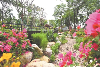 广州日报讯 (全媒体记者汤南 通讯员刘喜冰)置身于广州白云新城云憩里公园,随处可见雨水花园、生态旱溪、植草沟等“海绵宝宝”,它们能喝水会呼吸,吸引不少市民前来休闲锻炼、学习打卡。日前,记者从白云区了解到,2023年底,白云区在白云新城核心区建设了两座海绵城市公园,分别为白云新城云憩里公园和萧岗海绵探索乐园,打造集生态涵养、休闲娱乐、科普教育于一体的绿色公园和自然课堂。