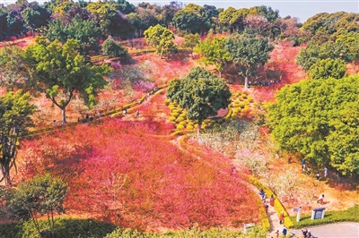 广州日报讯 (全媒体记者高敏华 通讯员关蕴琪)昨日,记者从西樵山获悉,继百亩山茶花盛开后,西樵山上桃花园内万株桃花初绽,天湖公园的樱花也唯美亮相,“繁花”争相探春的盛景正在“上演”。