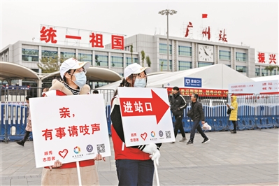广州日报讯 (全媒体记者张姝泓 通讯员广青协)在广州各大火车站点,春运志愿者们已经“整装”待发,即将接力上岗,服务平安春运。记者从广州青年志愿者协会获悉,团市委发动全市各级团组织开展“暖冬行动”,在主要交通站场提供志愿服务。2024年春运期间,广州预计有2万人次志愿者上岗服务。其中,预计有2400人次青年志愿者参与2024年广州火车站春运志愿服务。