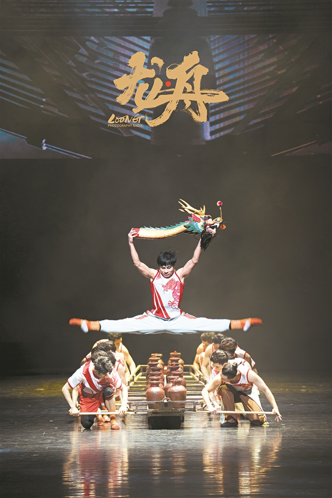 传统非遗“赛龙舟”与舞剧《龙·舟》选段创意相融。《启航2024——中央广播电视总台跨年晚会》上,在广州拍摄的舞蹈节目《龙跃山河盛》给观众留下深刻的印象。《龙跃山河盛》的领舞,正是舞剧《龙·舟》主演之一、广州歌舞剧院首席舞蹈演员庞冠宇。