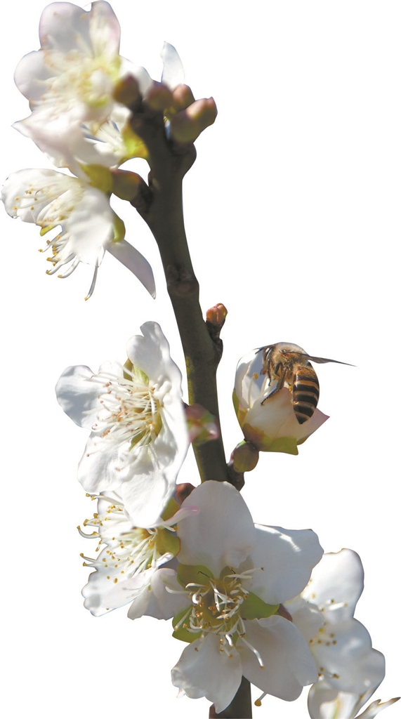 梅,蔷薇科,李属,原产我国南方地区,花色白雅洁,冬末春初开花,枝干苍古,植为盆景、庭木尤富观赏价值。