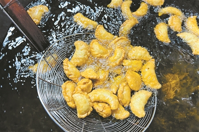 做油角,更麻烦。小时候做油角,每每需要全家出动。一个人做皮:“油”皮一层,“水”皮两层,叠在一起反复碾压,才能保证“起酥”成功。同时,另一个人要负责准备馅料:花生磨碎,芝麻去衣,拌上砂糖,所有馅料都要先炒香,混在一起才会好吃。等包好油角,下锅炸制之前,油也要先准备好。植物油没有猪油香。所以,讲究一点的人会提前一天买肥肉,洗洗切切,开锅炼油,又得费一番功夫。不过,正因为过程繁琐,需要大家同心协力,所以也会增加许多乐趣。