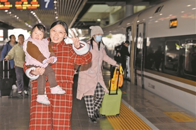 1月29日,罗女士携家人在广州南站乘坐复兴号回合肥过年,“我们也成了春运大军里的一员”,罗女士笑着说,过年前带着孩子观光比假期一直待在家里更有意义。