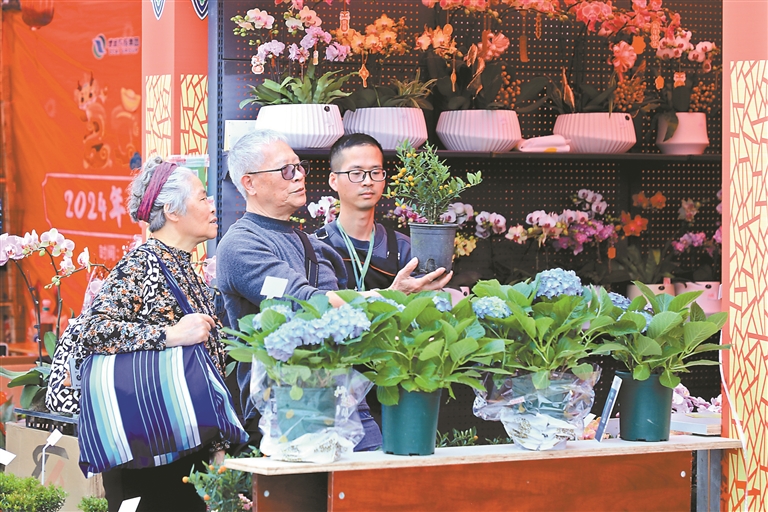 昨日上午,2024年广州增城迎春花市在增城广场正式开市。据介绍,今年增城迎春花市从1月31日持续至2月9日,为期10天,是广州11个区开市最早、持续时间最长的花市。