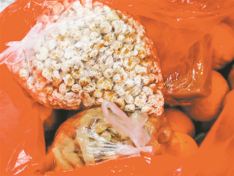 来自湖南郴州的黄先生还特意介绍起家乡特色豆腐圆子。“吃起来软嫩好吃,可以干吃也可以炖煮,味道都超级棒。家里带的东西背包都没装下,只好用塑料袋手拎了。”黄先生说。