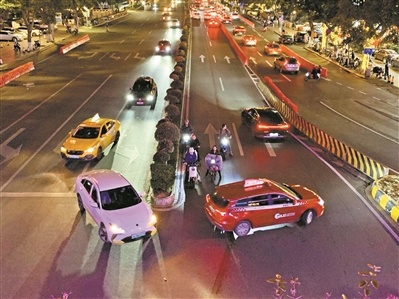 行驶至此的机动车往往会被突然冒出的非机动车干扰,轻则减慢车速避让,重则急刹车。非机动车还会和机动车抢道,或者阻碍机动车调头,令交通通行效率大大降低。