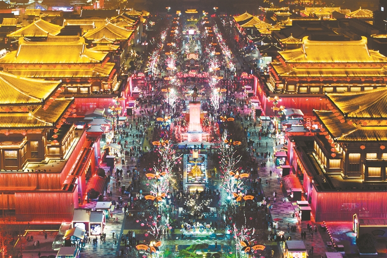 大明宫上元唐宫灯会将持续至3月17日。主题灯组组成了美美与共、礼仪华夏、大唐宴乐等多元文化空间。除此之外,还有《唐诗斗彩》《群诵诗舞》《霓裳羽衣舞》等精彩节目轮番上演。大唐芙蓉园新春大潮会将持续至3月17日。今年大唐芙蓉园灯会围绕“唐文化”元素,集中展示45组主题鲜明的新年花灯,营造出“景中赏灯,灯中有景,灯景相依”的沉浸式交互体验场景。