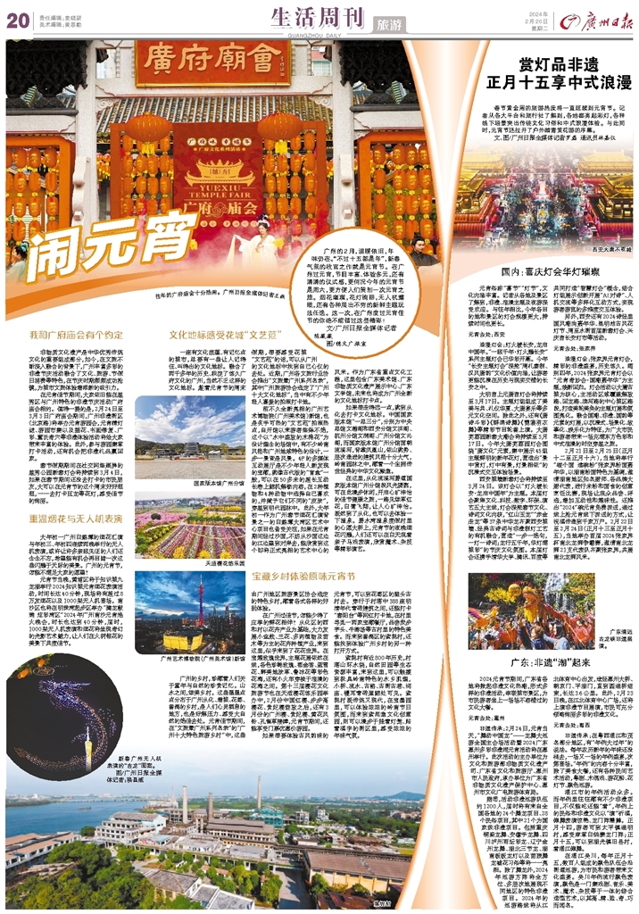 - 闹元宵 广州的2月,温暖依旧,年味仍在。“不过十五都是年”,新春气氛的收官之作就是元宵节。在广州过元宵,节目丰富、体验多元,还有满满的仪式感,更何况今年的元宵节是周六,更方便人们策划一次元宵之旅。烟花璀璨