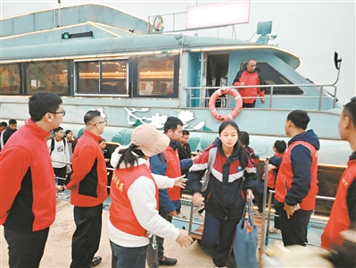 “船来了!”昨日上午11点,随着工作人员的呼喊,记者在广州市南沙区万顷沙文冲船厂码头看到,数里外有一艘白色渡轮划开水面缓缓驶来。