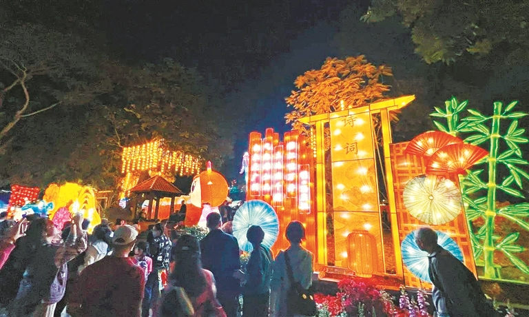 记者了解到,主题灯展选取“读懂广州”书系之《文学里的广州·诗词》中的广州经典名篇诗词,寓诗于景,制作了诗词灯饰、诗词灯组、诗词山景,打造成融诗词鉴赏、诗词创作、诗词竞技、诗词演绎、诗词娱乐、诗词集市于一体的诗词灯会文化游园区域。