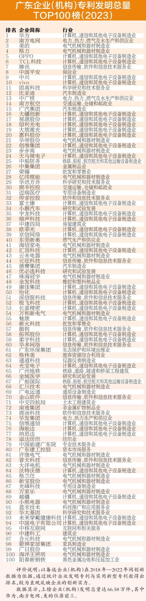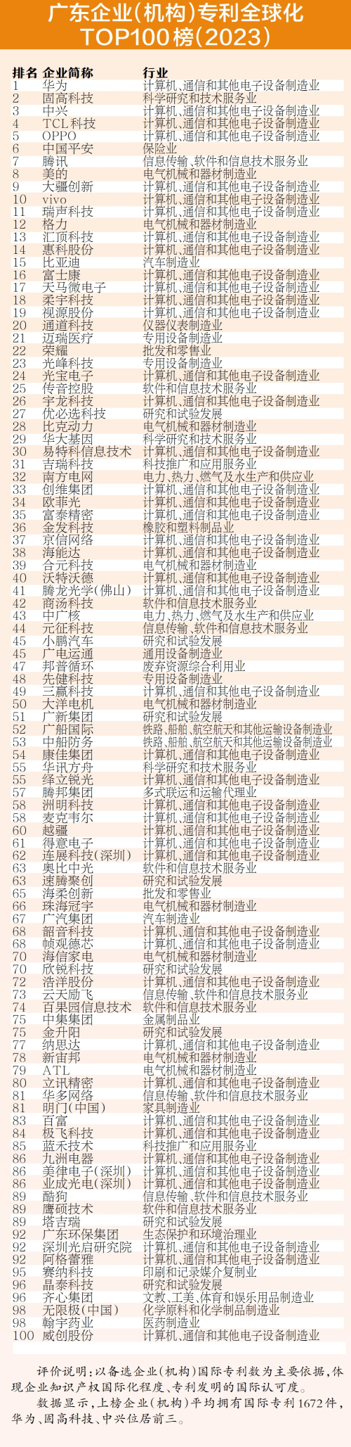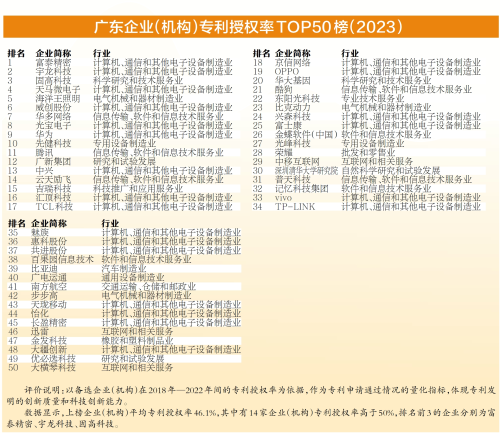 2月27日,广州日报数据和数字化研究院(GDI智库)发布7大广东企业(机构)创新评价榜单:“广东可持续创新发展企业TOP50榜(2023)”“广东新晋创新企业TOP20榜(2023)”“广东企业(机构)专利发明总量TOP100榜(2023)”“广东企业(机构)专利授权率TOP50榜(2023)”“广东企业(机构)专利全球化TOP100榜(2023)”“广东企业(机构)创新影响力TOP100榜(2023)”“广东企业(机构)创新成长性TOP100榜(2023)”。
