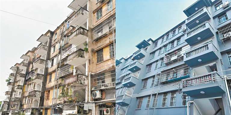 针对物业失管的老旧小区,发动居民自治的力量也是一条路径。位于蟹山社区的港前路11号大院是当年广州航道局的职工生活区,已在这里生活了50年的退休职工何叔对记者说:“我们宿舍楼最早的一栋是1974年前后建的,如今楼栋老旧、地面坑洼不平,在这里住的以六七十岁老年人居多,以前大家出行不便,总担心会摔倒。去年,社区给我们进行了楼栋外立面翻新,还修整了路面、路灯,楼梯上还安装了扶手、加高护栏等,改造后大家都好开心。”