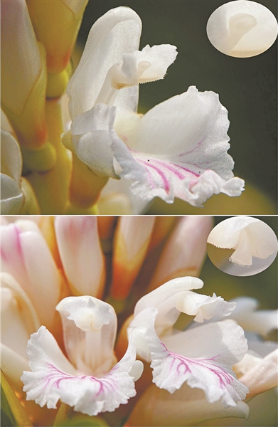春光无限好,由华南国家植物园培育的益智新品种大苞红唇益智也正在开放。据介绍,它是利用益智作母本,小草蔻(现已归并为海南山姜)作父本进行远缘杂交,经过多代分离、筛选和鉴定选育出来的新品种。与其母本益智相比,大苞红唇益智花朵更大,颜色更艳丽。