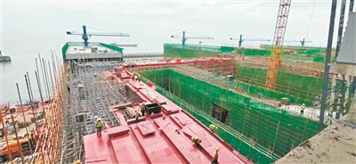 广州日报讯 (全媒体记者张翔宇 通讯员钟轩摄影报道)记者昨日从中山市翠亨新区获悉,省市重点项目新中山客运口岸建设已进入快车道,目前已进入施工关键时期。