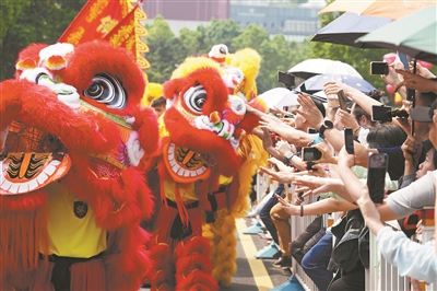 记者留意到,禅城区环湖小学401班45名同学自组“少年洪拳”队,成为首个加入北帝出巡的“学生方阵”,同学们一个个步伐整齐、精神抖擞,展现出昂扬向上的精神面貌。