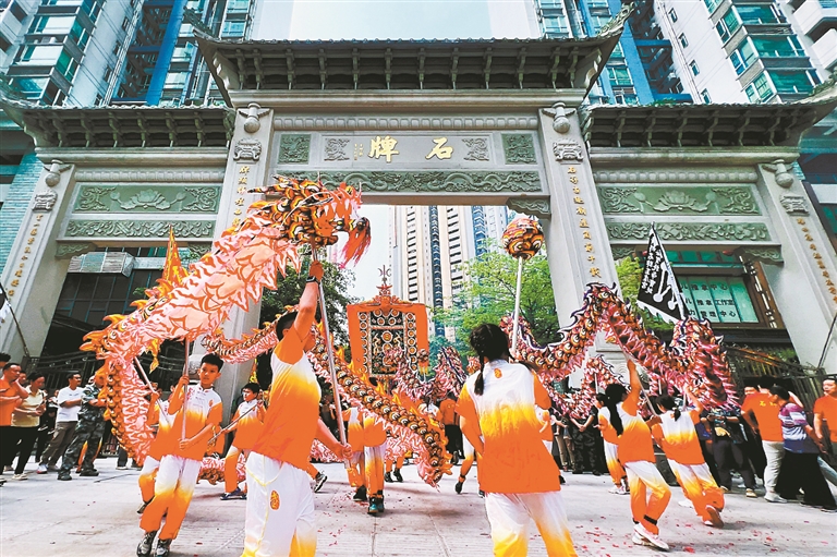 天河:石牌村巡游祈福 醒狮舞龙朝气蓬勃