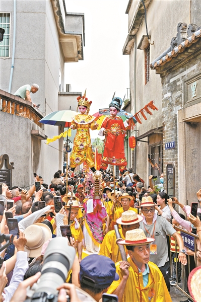 谈到对飘色巡游的感受,街坊王阿姨说:“这是我们沙湾‘三月三’一项精彩民俗节目,浓缩展示了古老沙湾文化。看到很多游客从广州各地专程来观赏飘色,街巷人山人海,我们感到很自豪。”