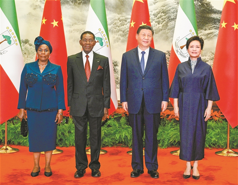 习近平指出,中国同赤道几内亚是肝胆相照的好朋友、好伙伴,高水平政治互信是两国关系的最鲜明特征。建交半个多世纪以来,双方始终守望相助、风雨同舟,在涉及彼此核心利益和重大关切问题上坚定相互支持,成为中国同非洲国家真诚友好、携手发展的生动写照。新形势下,巩固好、发展好中国同赤道几内亚关系符合两国和两国人民的根本利益和共同期待。中方坚定支持赤道几内亚维护国家主权独立、反对外来干涉、自主探索本国发展道路,愿同赤道几内亚以提升全面战略合作伙伴关系为契机,进一步密切各领域、各层级友好往来,深入开展改革发展、脱贫攻坚等领域经验交流,为两国传统友好注入持久动力。