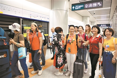 图为在番禺站搭乘首发列车的乘客。(广州日报全媒体记者骆昌威 摄)