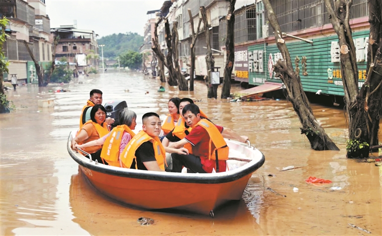 6月18日,广州市消防救援支队前方指挥部成立4个战斗组编队分别投入新铺镇、广福镇、蕉城镇、三圳镇4个作业点开展清淤除障、转运物资、排洪排涝、救助群众等救援工作。