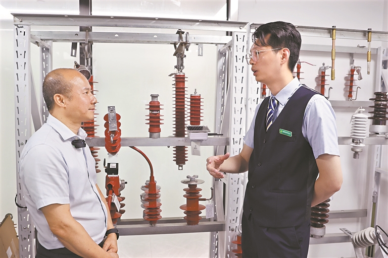 避雷器,是企业的核心“拳头”产品。“如今,通过我们的防雷系统,让市民能在雷暴天气正常用电,也为很多企业避免了因打雷停电造成的停工损失,还保障了一些海上风电等项目的新能源清洁。”邱续东提到,企业不断提升科技创新“硬核力”,为避雷器配备了智能监测“助手”,不仅能对避雷器的运行状态、故障原因等进行监测判断,还能将远程的监测数据及时同步在手机端,大大减少运行维护的人力成本。
