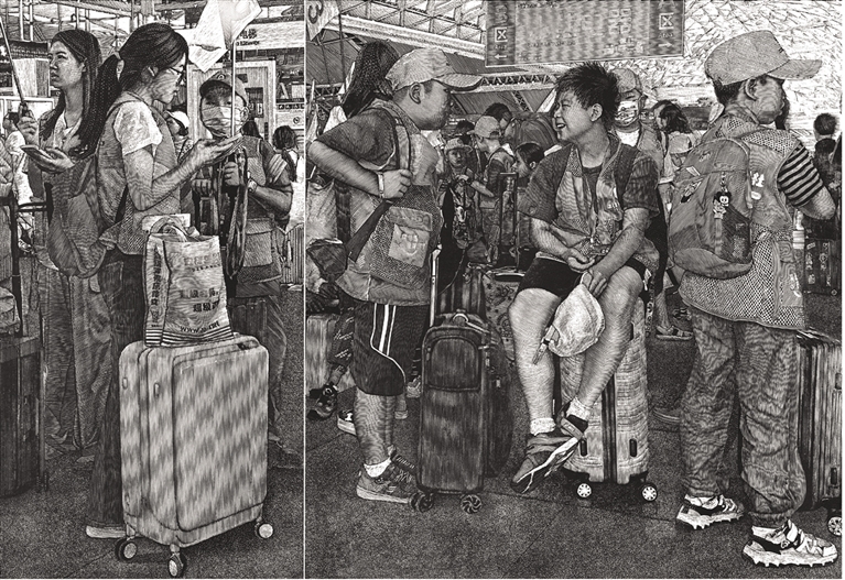 参展艺术家阳军分享了自己的艺术成长之路,自小喜爱绘画但天生右手残疾的他只能用左手握笔,经过多年的刻苦学习,铆足创作的劲头,坚定信念、瞄准方向,走出了独具特色的艺术道路,成为中国美术家协会会员,曾获广州市十佳美术教师、2023年“感动广州的最美教师”等称号。阳军表示,在学习和创作艺术作品过程中,可能会遇到一些困难,但是只要自己能克服困难,坚持画画、写字,不半途而废,所谓水滴石穿,终有一天会有所收获。“画画可以使我获得精神上的享受和快乐,同时,也给予了我人生的自信。”