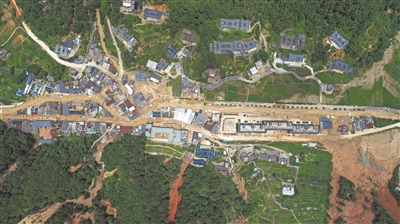 救援,争分夺秒。广东省消防救援总队于6月17日将洪涝灾害救援四级应急响应提升为三级,并派救援直升机抵达灾区开展人员转移和物资投放。因通信信号中断,受灾状况不明的大新村一度成为“孤岛”,梅州市消防救援支队的救援人员率先乘直升机进入,开辟出一条“空中救援通道”。6月18日11时,梅州市三防指挥部将防汛Ⅰ级应急响应调整为防汛Ⅱ级应急响应。在受灾严重的平远、蕉岭等地,部分群众已开始清除淤泥,灾后生产生活正在有序恢复中。图为6月20日,大暴雨后的梅州市平远县泗水镇。(广州日报全媒体记者卢政 摄)