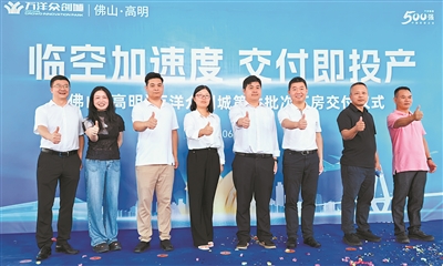 近日,“临空加速度 交付即投产”——佛山(高明)万洋众创城第六批次厂房交付仪式在高明更合镇举行,第六批4栋厂房正式交付给业主并随即投产,为企业节省了长达6个月的建设时间,彰显了当地高效的服务能力和优质的营商环境。