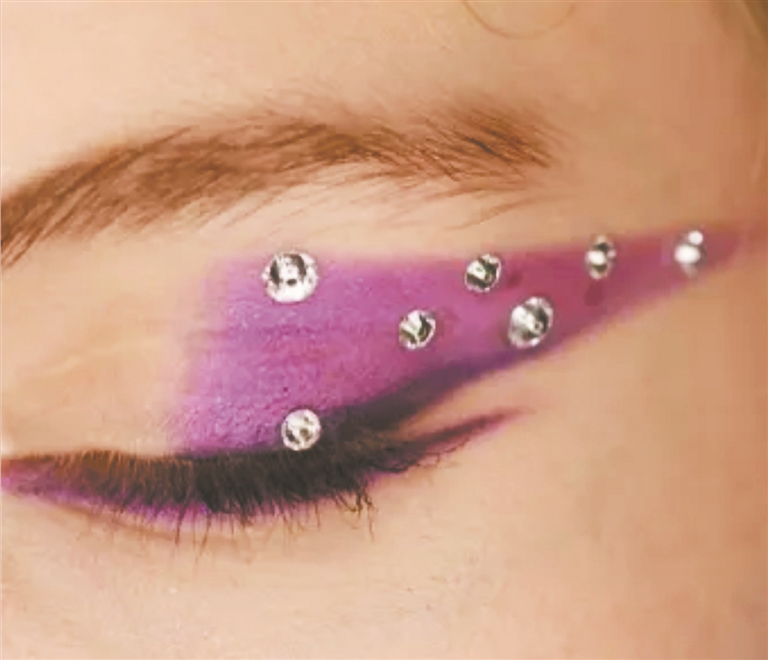 在黄静怡看来,妆容是靠不同部位组合而成的整体效果,以“珍珠妆”为例,会根据五官特色与期望达到的妆效,来调整上妆侧重点,珍珠装饰或在眉心,或在鼻梁、或在眼周等部位。